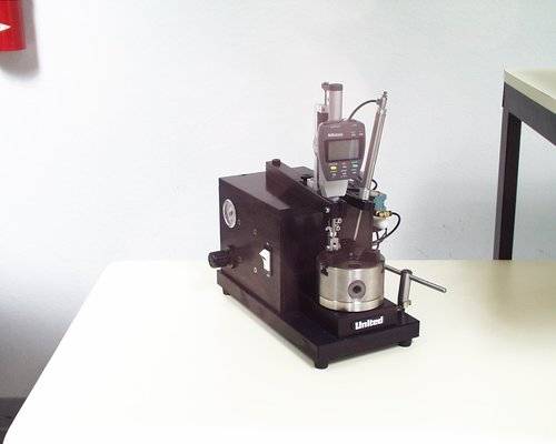 United DAT-18-CUP Test Measuring Unit with Optical Encoder, Rotating Chuck and Micrometer with rolling foot.