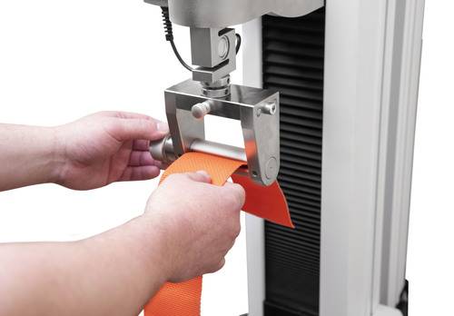 The G1111 secures textile webbing, tape, and braided materials typically used in construction, shipping, and other industrial uses. The grip is ideal for conformance to ASTM D6775 and related standards, accommodating a wide range of sample widths and forces up to 2,000 lbF (10 kN).