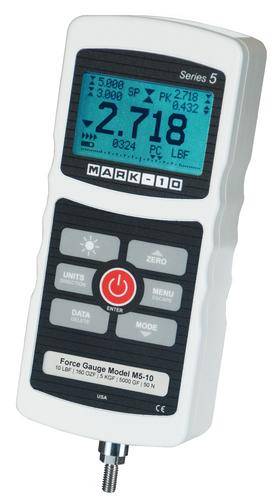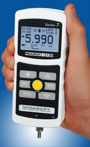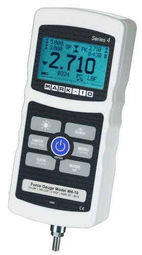 Mark-10 Force Gauges can be used in a virtually limitless number of tension and compression testing applications. All Force Gauges are able to capture the peak force in both tension and compression and have selectable units of measurement. Capacities are available from 50 g full scale to 1,000 lb, the broadest range in the industry. Mark-10 Force Gauges may be handheld or used with a test stand and gripping fixtures to create a complete testing solution.