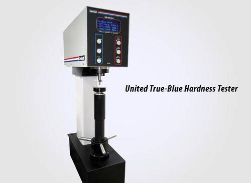 The United TRU-BLUE Rockwell Hardness Tester is computer controlled (closed loop) application of forces are via load cell measurement. The Tester has a 4 x 20 bright vacuum fluorescent display. Front panel controls with Piezo-Electric switches. Auto self-test and last test setup recall at startup. Removable parts clamp used to secure irregular shaped or oversize test specimens. Logical setup and operating menue from front panel keys. Throat depth is 5.5 inches. Optional 9.5 inch throat depth is available. |